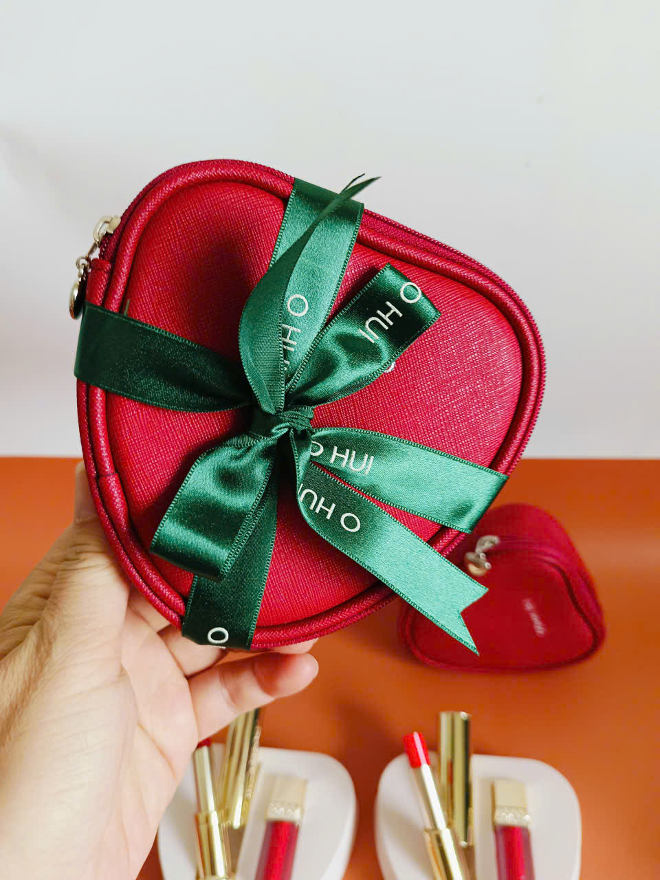 Ví da hình trái tim siêu xinh: Thiết kế nhỏ gọn, tinh tế, vừa làm ví cầm tay vừa giữ son gọn gàng. Nhìn là yêu ngay từ cái chạm mắt đầu tiên 🫶
