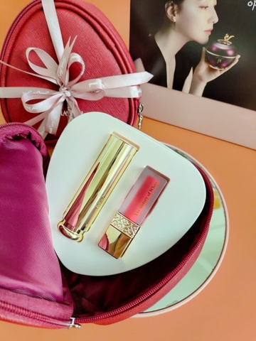 👉 Vừa dưỡng môi, vừa trang điểm, lại có thêm chiếc ví da trái tim “iu hết nấc”.