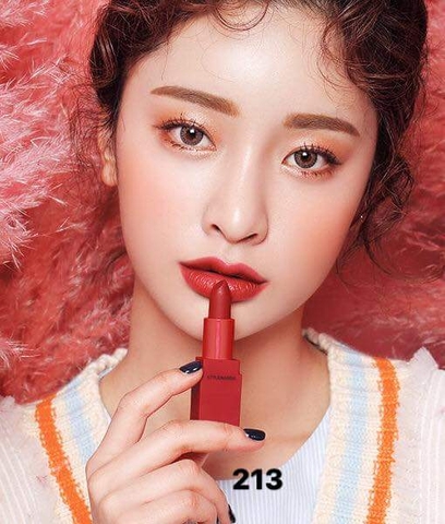 Sắc đỏ ấm áp của #214 không chỉ hợp với làn da châu Á mà còn tạo cảm giác vô cùng hiện đại, trẻ trung. Chất son thiên lì giúp ta dễ dàng đánh theo kiểu lòng môi.