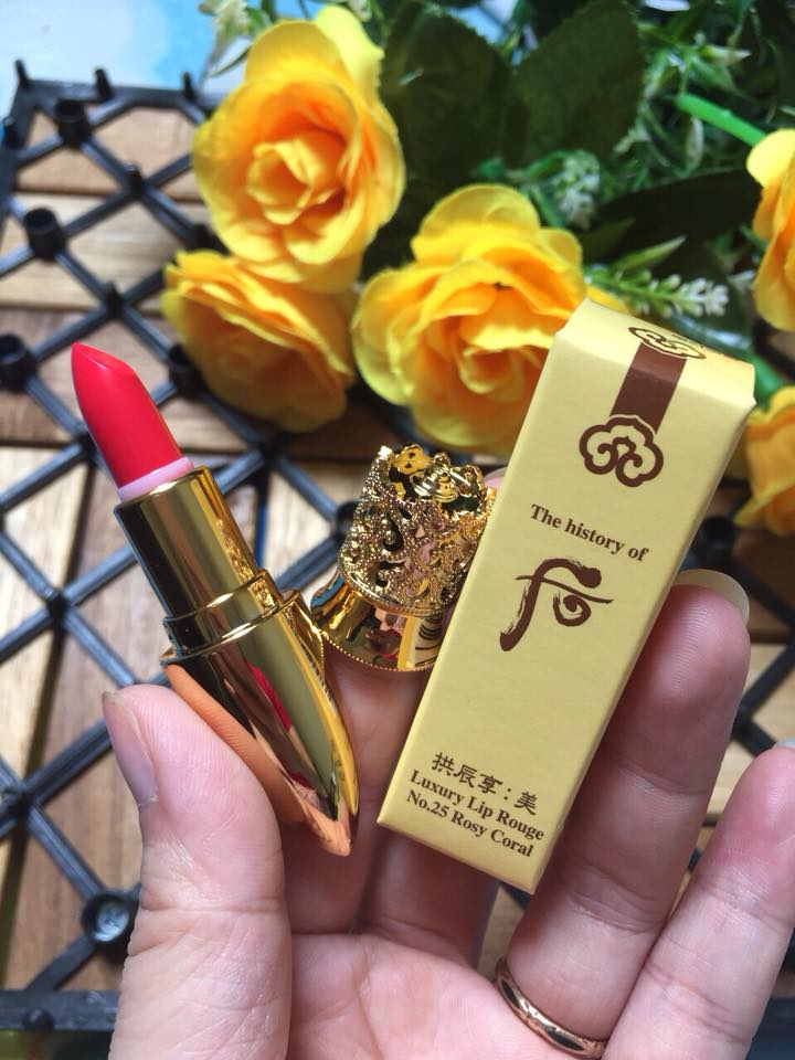 - Son môi Whoo Mi Luxury Lip Rouge được thương hiệu mỹ phẩm Hàn Quốc LG giới thiệu năm 2017 có hình dáng hoa Sen được lấy cảm hứng từ triều đại Silla do quốc vương Park Hyeokgeose sáng lập và là một trong số các Triều đại duy trì liên tục lâu nhất trong lịch sử châu Á. Với thiết kế nắp đậy hình vương miện của Hoàng Hậu đính kèm cọ son tiện lợi cùng vòng kim loại màu bên trong nắp bạn dễ dàng nhận diện màu son.