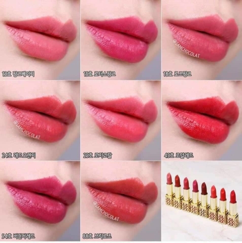 Tone màu của Whoo Velvet Lip Rouge thật sự tinh tế và có chiều sâu. Những sắc màu của son Hoàng Hậu Whoo dường như có cảm xúc thật sự ẩn chứa sau mỗi miligram phân tử dàn trải trên làn môi, thật sự khác biệt so với những dòng son trang điểm khác trên thị trường![]()