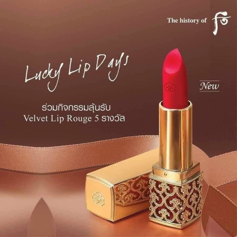 Trải nghiệm đẳng cấp khác biệt của Hoàng Hậu cùng Whoo Velvet Lip Rouge chứa tinh dầu chống nhăn môi, mềm mại và bền màu, lâu trôi lên tới trên 12 tiếng ![]()